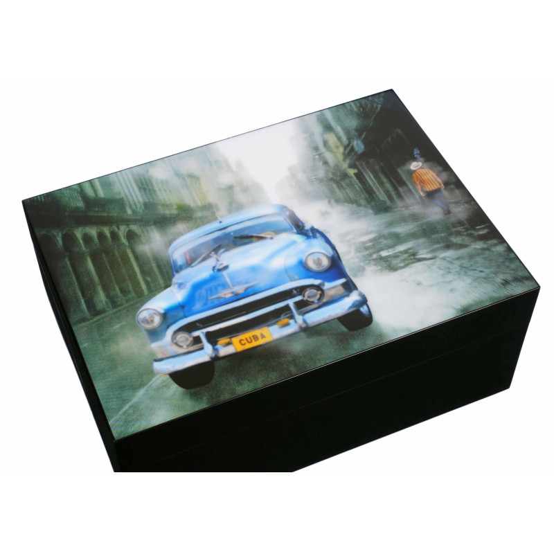 - Артикул:Хьюмидор Gentili Blue Car на 50 сигар, Черный лак SV50-Black-Blu