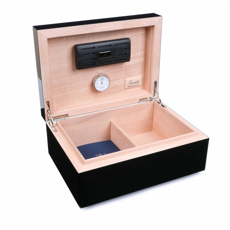 Новый хьюмидор премиум-класса на 50 сигар от итальянских мастеров фабрики Fabrizio Gentili SRL (производителя лучших хьюмидоров по сочетанию цена-качество в своем классе). Модель характеризуется строгим классическим дизайном, подходящим для большинства интерьеров, и безупречностью в исполнении. Корпус представляет собой комбинацию нескольких видов дерева, что обеспечивает стойкость к деформации при колебаниях температуры и влажности. Внутренняя отделка выполнена из испанского кедра. На верхней поверхности хьюмидора вручную выполнен рисунок с финишным покрытием 7-ю слоями рояльного лака. В комплекте увлажнитель с акриловым полимером, итальянский гигрометр, фирменный буклет Gentili с информацией о компании и мультиязычной инструкцией по уходу. Подарочная упаковка. Ручная работа, сделано в Италии. Официальный сайт производителя: https://www.gentili-italy.com