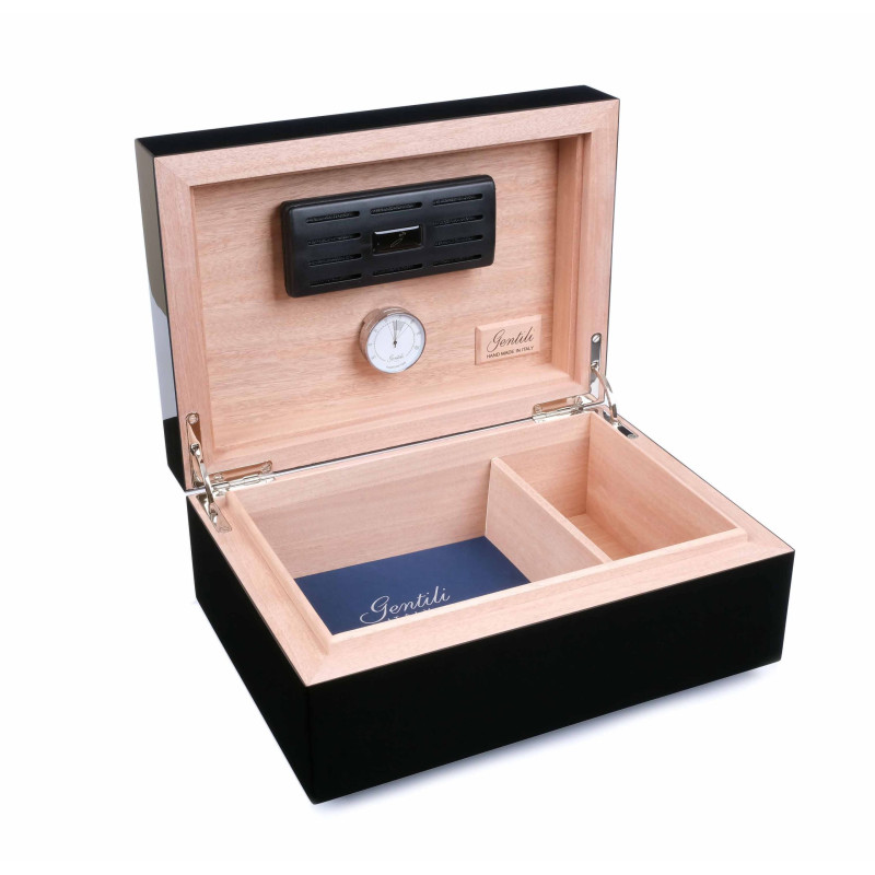 - Артикул:Хьюмидор Gentili Fumatore Argento на 50 сигар, Черный лак SV50-B
