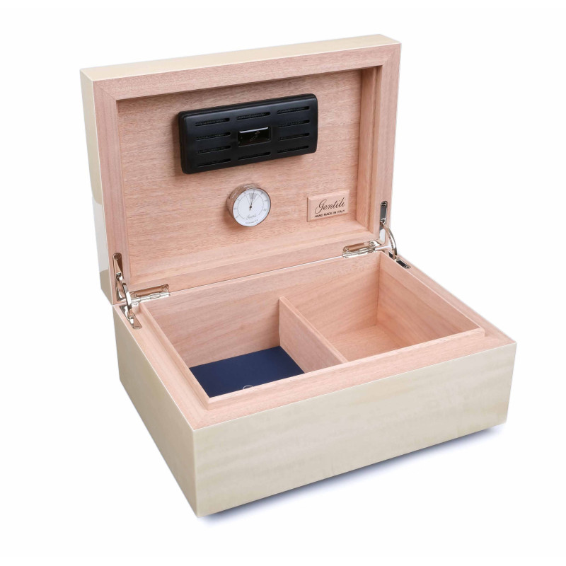 Новый хьюмидор премиум-класса на 50 сигар от итальянских мастеров фабрики Fabrizio Gentili SRL (производителя лучших хьюмидоров по сочетанию цена-качество в своем классе). Модель характеризуется строгим классическим дизайном, подходящим для большинства интерьеров, и безупречностью в исполнении. Корпус представляет собой комбинацию нескольких видов дерева, что обеспечивает стойкость к деформации при колебаниях температуры и влажности, снаружи отделан шпоном дерева Танганьика (анегри, ореховое бассамское дерево), встречающегося только на востоке африканского континента. Внутренняя отделка выполнена из испанского кедра. На верхней поверхности хьюмидора вручную выполнен рисунок с финишным покрытием 7-ю слоями рояльного лака. В комплекте увлажнитель с акриловым полимером, итальянский гигрометр, фирменный буклет Gentili с информацией о компании и мультиязычной инструкцией по уходу. Подарочная упаковка. Ручная работа, сделано в Италии. Официальный сайт производителя: https://www.gentili-italy.com