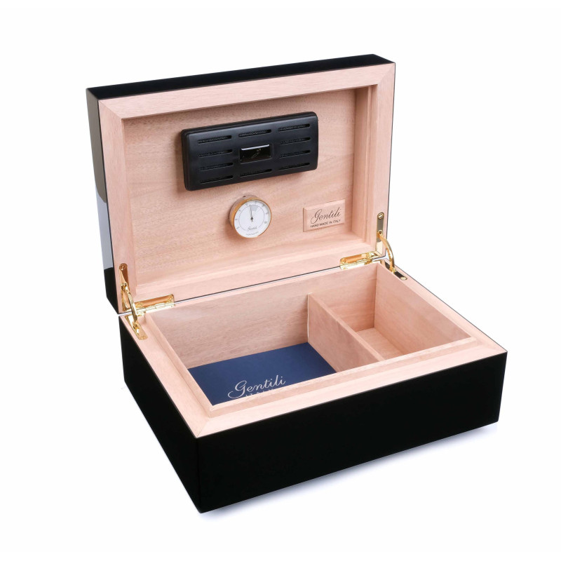 - Артикул:Хьюмидор Gentili Fumatore Dorato на 50 сигар, Черный лак SV50-Bl