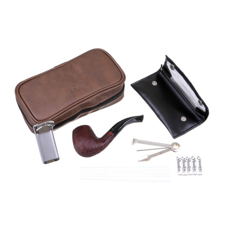 Набор с трубкой Passatore Raffaello 409-217 представляет собой комплексное и продуманное решение для ценителя качественного курения, сочетающее в себе функциональность, элегантный дизайн и превосходное немецкое качество сборки. Этот подарочный набор идеально подходит как для начинающего трубокура, желающего начать свое знакомство с миром трубок с достойного комплекта, так и для опытного любителя в поисках надежного и стильного набора для повседневного использования или путешествий. Центральным элементом набора является изящная итальянская трубка от фабрики Cesare Barontini из Ливорно, изготовленная из качественного тосканского бриара, известного своей долговечностью и отличными теплотехническими свойствами. Трубка оснащена удобным акриловым мундштуком и рассчитана на использование 9-миллиметровых фильтров, обеспечивающих более мягкое и чистое курение. Все необходимые аксессуары организованно хранятся в стильной кожаной сумке, которая не только защищает комплект, но и придает ему солидный вид. Сумка имеет отделения для двух трубок и карманы для аксессуаров. Дополнительный комфорт и заботу о табаке обеспечивает съемный кисет с внутренним слоем из хирургической резины, эффективно сохраняющий оптимальную влажность табака. В набор также входит практичный тампер-тройник для утрамбовки табака, надежная газовая зажигалка с боковым пламенем в металлическом корпусе, специально разработанная для раскуривания трубок, а также набор фирменных угольных фильтров и ершей для поддержания трубки в идеальной чистоте. Набор Passatore Raffaello 409-217 — это готовое, эстетичное и полностью укомплектованное решение, которое позволит вам наслаждаться процессом курения с максимальным комфортом и удовольствием.