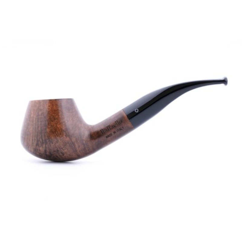 Трубка для табака Barontini Raffaello гладкая Форма 329 представляет собой элегантный и необычный образец итальянского трубкостроения, вышедший из стен уважаемой тосканской мастерской Чезаре Баронтини в Ливорно. Эта модель из престижной серии Raffaello предназначена для ценителей, которые ценят классическую красоту натурального бриара и безупречную функциональность, воплощенную вручную с вниманием к каждой детали. Главной отличительной особенностью этой трубки является ее гладкая полированная поверхность, которая позволяет в полной мере оценить благородную текстуру и природный рисунок высококачественного тосканского бриара. Такая обработка не только придает трубке изысканный, классический внешний вид, но и подчеркивает ее статус как предмета искусства. Изготовленная из лучших сортов бриара, эта трубка гарантирует долговечность, отличные теплотехнические свойства и чистый, неискаженный вкус табака. Она оснащена элегантным и гигиеничным акриловым мундштуком и рассчитана на использование сменных 9-миллиметровых фильтров для дополнительной очистки и осушения дыма, что делает процесс курения более мягким и комфортным. Технические характеристики модели 329 предлагают уникальные и выразительные пропорции: при весе 53 грамма и внушительной длине 15 сантиметров она обладает широкой, но невысокой чашкой диаметром 46 миллиметров и высотой 44 миллиметра. Глубина табачной камеры 35 миллиметров в сочетании с увеличенным диаметром и удлиненным мундштуком обеспечивает объемное, прохладное и продолжительное курение, позволяя в полной мере насладиться богатством и развитием вкуса любых табачных смесей. Широкая и приземистая форма чаши создает особые условия для медленного горения, а увеличенная общая длина трубки придает ей элегантный, вытянутый силуэт и способствует дополнительному охлаждению дыма. Эта модель является идеальным выбором для тех, кто предпочитает широкие чаши и ценит в трубке ощущение уникальности и нестандартной элегантности. Следует учитывать, что каждая трубка изготавливается вручную, поэтому представленная на фотографии является образцом, а заказанная вами трубка может иметь незначительные индивидуальные отличия в форме и рисунке древесины, что лишь подчеркивает ее уникальность и ручную работу. Barontini Raffaello гладкая Форма 329 — это выбор для тех, кто ценит итальянскую классику, мастерство и ищет трубку с уникальной, широкой чашей и элегантным удлиненным силуэтом с безупречной полировкой и неповторимым стилем.