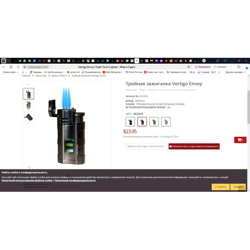 Зажигалка сигарная Vertigo Envoy Gunmetal