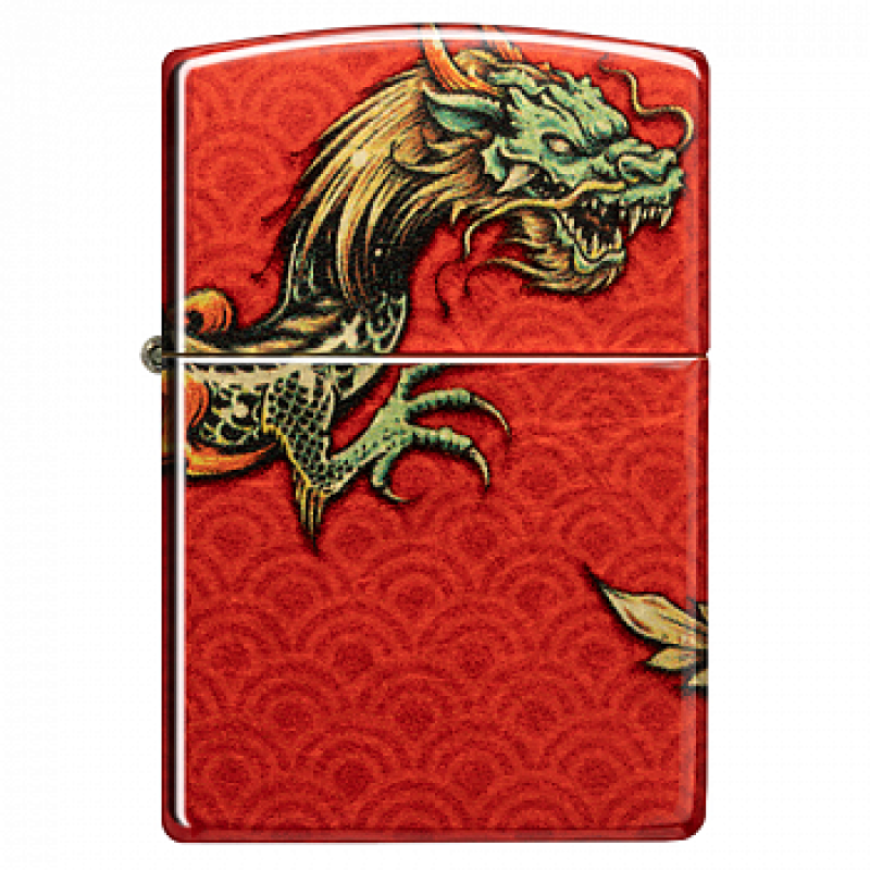 Особенность дизайна: Изображение дракона на геометрическом фоне, логотип Zippo