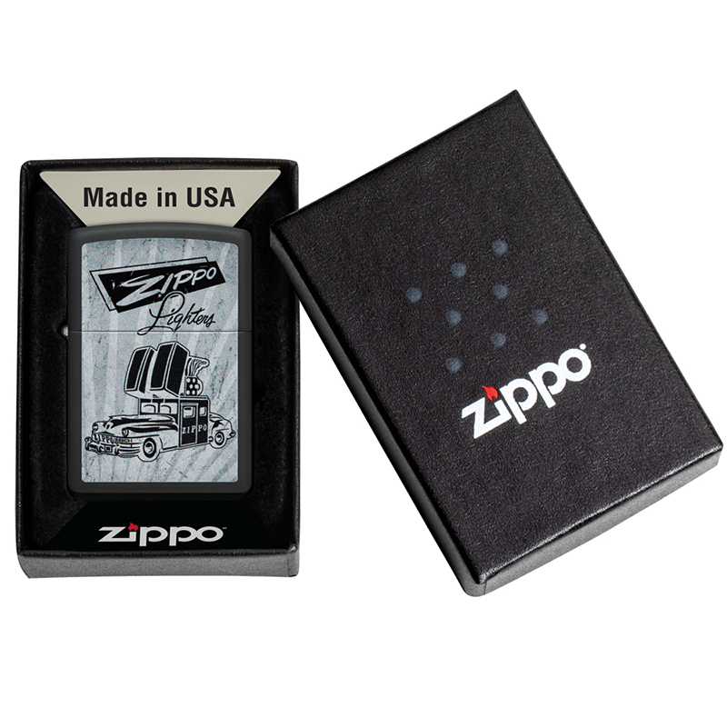 Зажигалка Zippo 48572 Car Design Black Matte – ретро-стиль на матовом чёрном