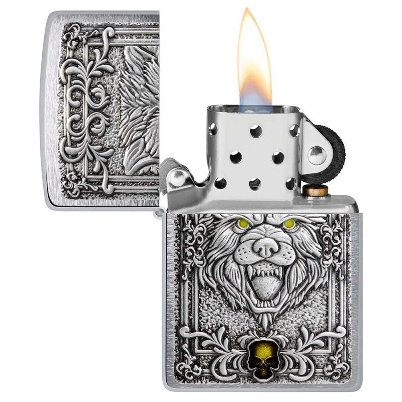 Особенности: Матовое хромированное покрытие, дизайн с волком, ветроустойчивость, фирменный щелчок, система многократной заправки