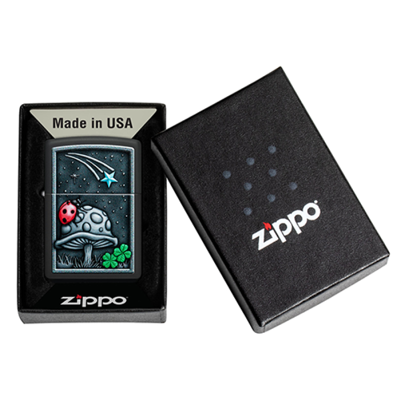 Зажигалка Zippo 48724 Ladybug Design Black Matte — это стильный аксессуар с милым природным дизайном. Модель из серии Classic выполнена в тактильном чёрном матовом покрытии и украшена ярким изображением божьей коровки. Зажигалка обладает фирменной ветроустойчивой конструкцией, узнаваемым щелчком и прочным металлическим корпусом, обеспечивающим надёжность в любых условиях. Благодаря системе многократной заправки, эта зажигалка станет вашим долговечным спутником. Для оптимальной работы рекомендуется использовать только оригинальные кремни, фитили и высококачественное топливо Zippo. Сделано в США.