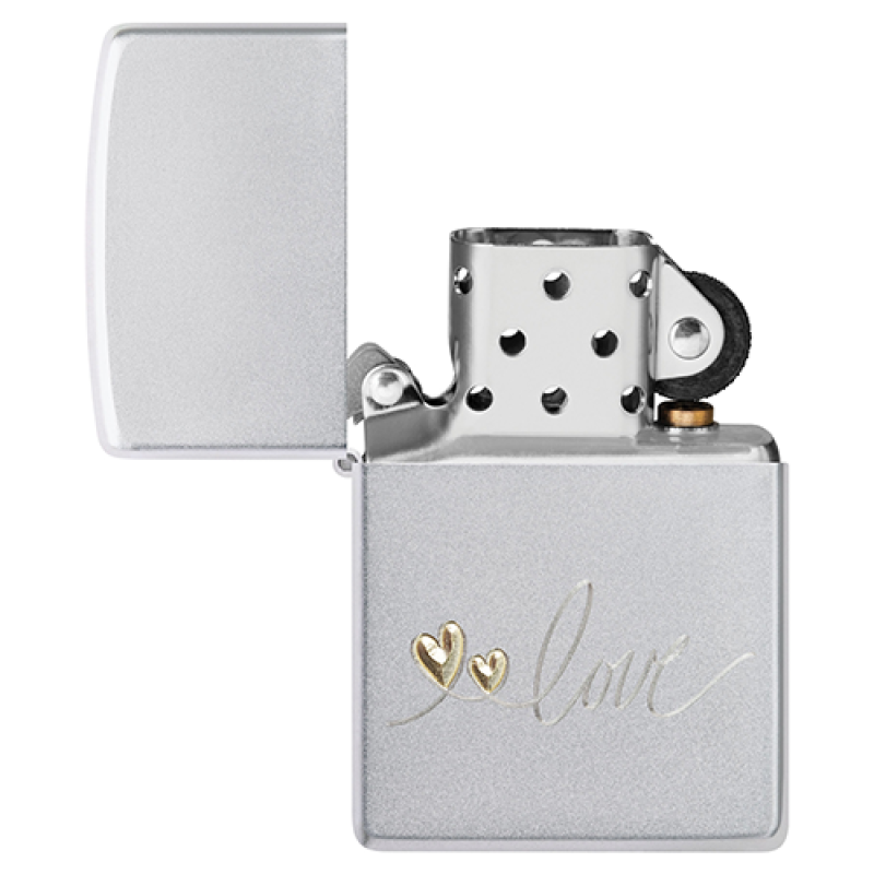 Зажигалка Zippo 48725 Love Design Satin Chrome™ — романтичный дизайн на матовом хроме