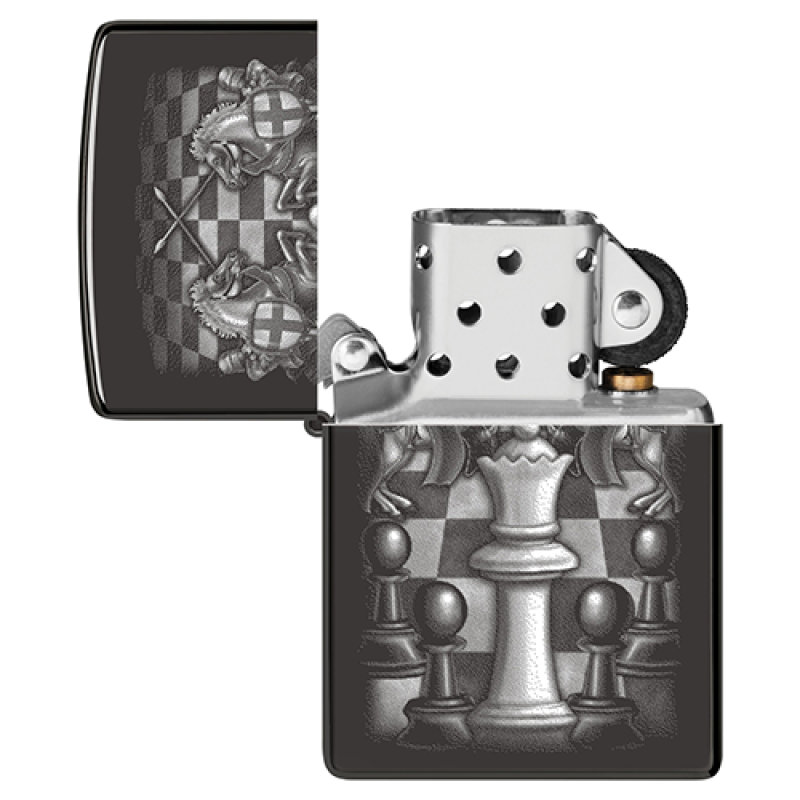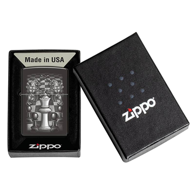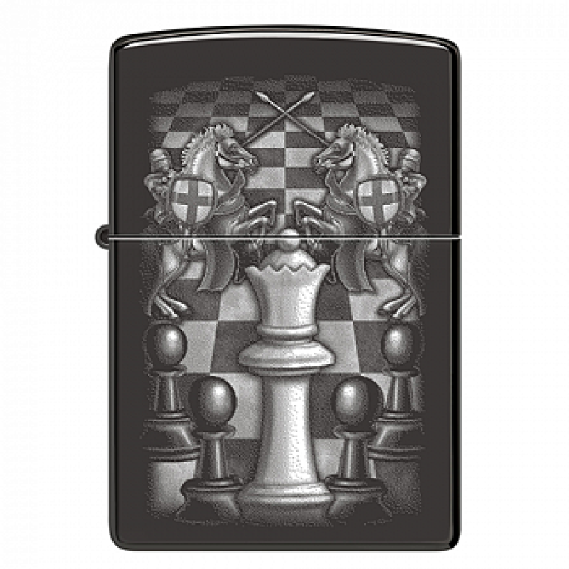 Зажигалка Zippo 48762 Chess Design High Polish Black — шахматная стратегия в зеркальном чёрном