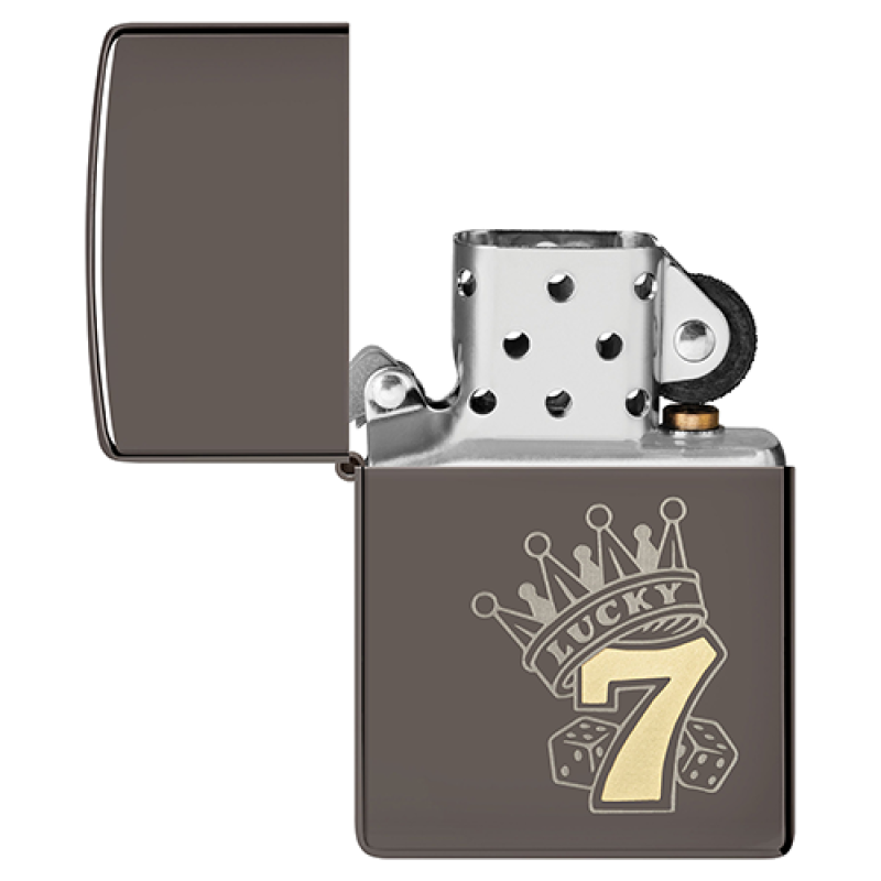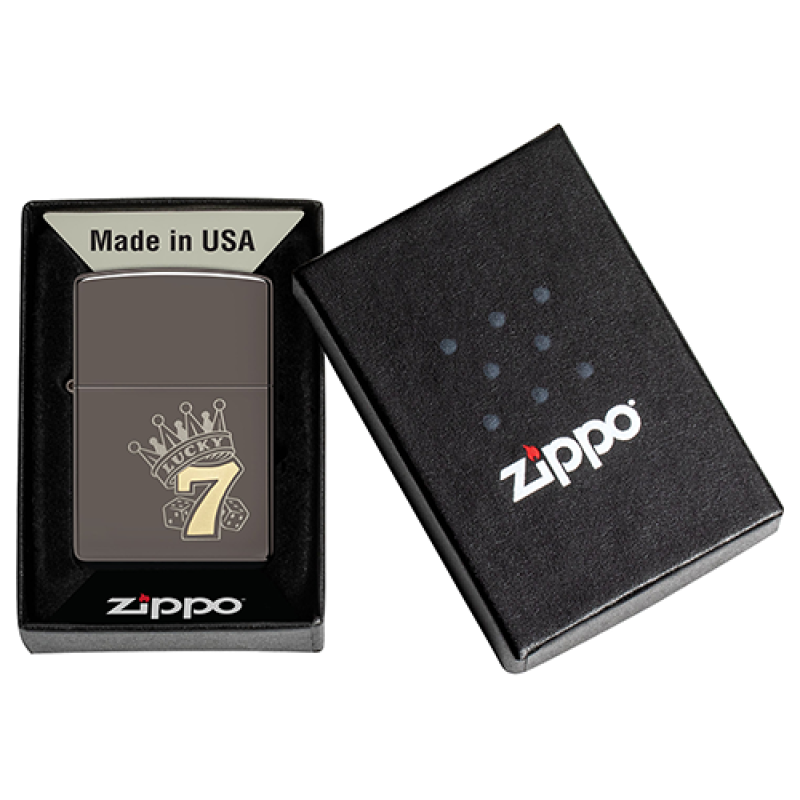 Зажигалка Zippo 48913 Lucky 7 Black Ice — это стильный аксессуар, приносящий удачу. Модель из серии Classic выполнена в покрытии Black Ice®, сочетающем глубокий чёрный цвет с ледяным блеском. С помощью двухцветной лазерной гравировки нанесено изображение счастливой цифры 7 в короне и пары игральных костей, выполненных в роскошных латунных и хромированных тонах. Зажигалка обладает фирменной ветроустойчивой конструкцией, узнаваемым щелчком и прочным металлическим корпусом, обеспечивающим надёжность в любых условиях. Благодаря системе многократной заправки, эта зажигалка станет вашим долговечным спутником. Для оптимальной работы рекомендуется использовать только оригинальные кремни, фитили и высококачественное топливо Zippo.