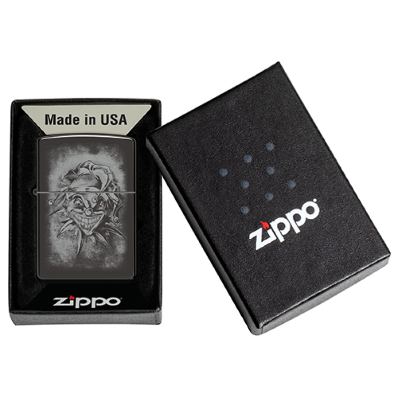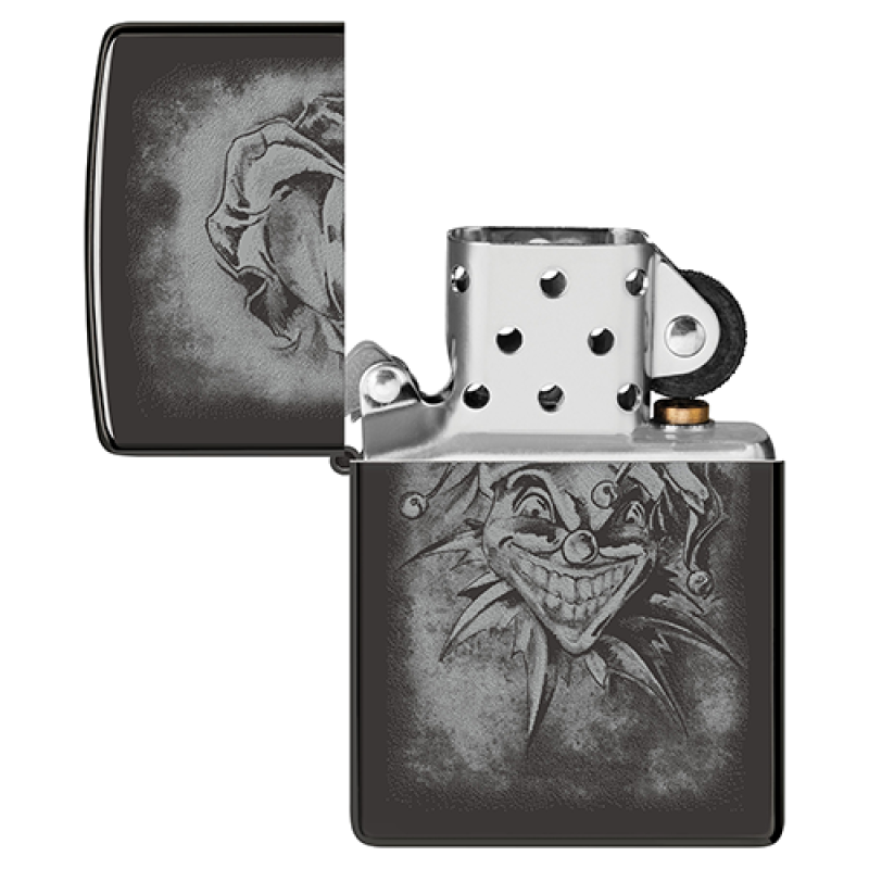 Зажигалка Zippo 48914 Clown High Polish Black — жуткая ухмылка клоуна в зеркальном чёрном